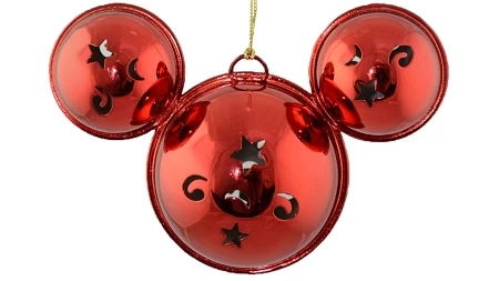 Add a magical touch this year to your Christmas Tree with this red Mickey Mouse icon Metal Ornament, with stars and moons.