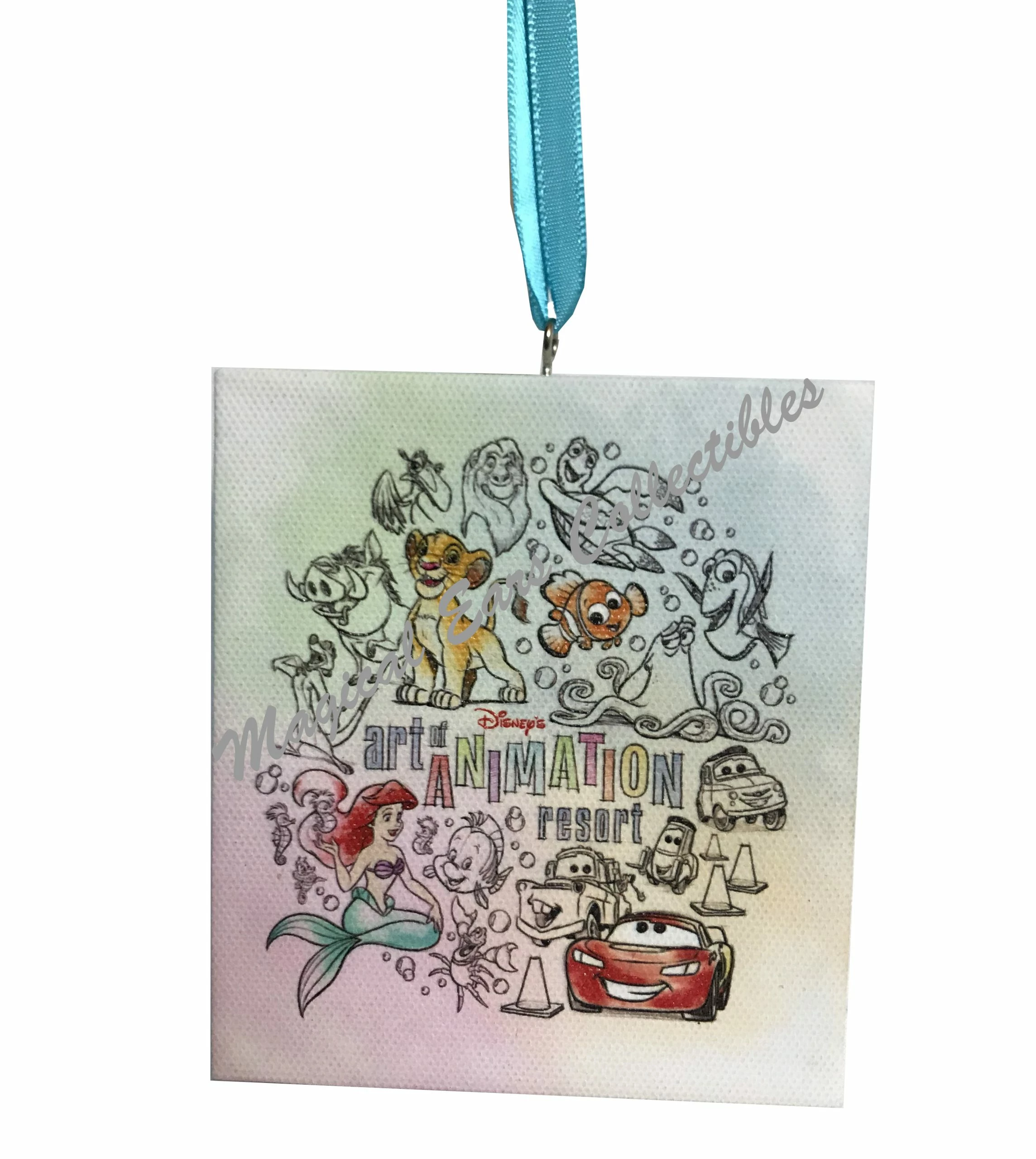 Hang a reminder of your Vacation at Disney animation with this fun ornament. Lightning McQueen, Mater, Simba, Ariel, and Dory are among the characters featured on this canvas ornament.